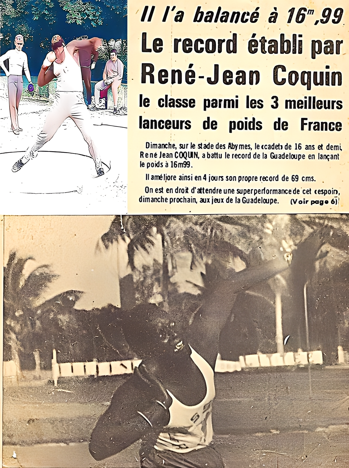 La première photo est celle du jet record de France espoir en 1975 (17, 67 m) alors que j'étais encore junior au match international espoir France/Allemagne à Bischwiller en Alsace. Ce record est resté 23 ans sans être battu.